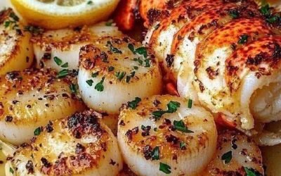 Ingredienser (för 2 personer) - 2 hummersvansar - 10 stora kammusslor, rengjorda och klappade torra - 4 msk osaltat smör…