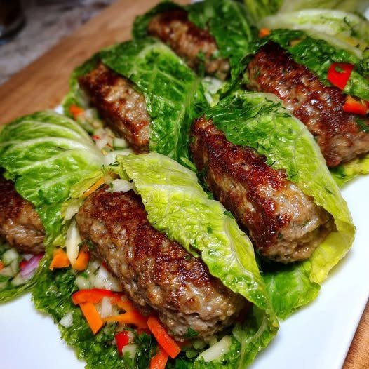 1 stor, fast sallad eller isbergssallad (stora, hela blad)